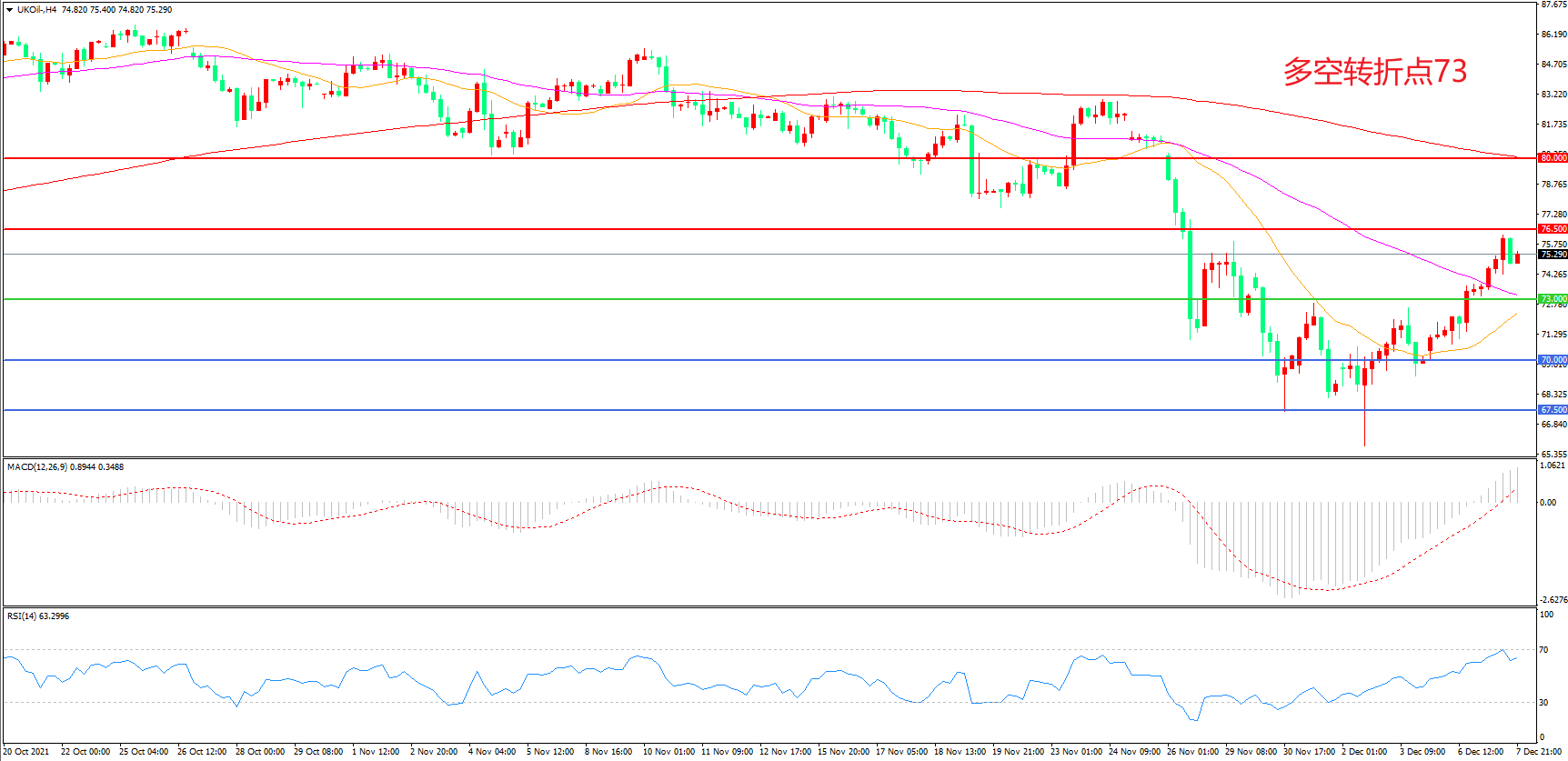 交易策略:在73.00之上看涨,目标76.50                80.00