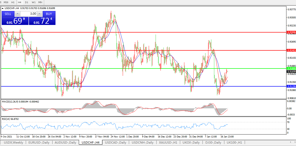 备选策略:0.9180上方看涨,目标0.9270、0.9370