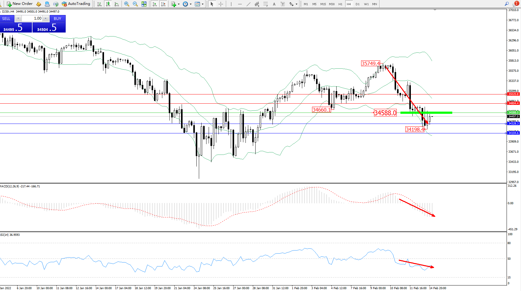 道琼斯指数2月14日(周一)收盘下跌172.28点,跌幅0.50%,报34565.78点;美股收盘,俄乌危机扰动市场,三大股指反复震荡,美国国务卿布林肯宣布已下令关闭位于基辅的美国驻乌克兰大使馆,并将“暂时性地”把留在基辅的少数外交人员转移到乌克兰西部城市利沃夫。布林肯呼吁位于乌克兰的美国公民尽快离境;布林肯在声明中说:“我下令采取这些措施的原因只有一个,那就是我们工作人员的安全。我们强烈敦促所有留在乌克兰的美国公民立即离开乌克兰”。他同时表示,这些决定并不会改变美国对乌克兰的承诺,美国也仍然会与俄罗斯保持沟通,为达成外交解决方案做努力。美国国务院此前已经宣布美国驻基辅大使馆的领事服务将于13日暂停。美国国务院表示,本周末将在利沃夫保持一个小型领事馆用于紧急服务。