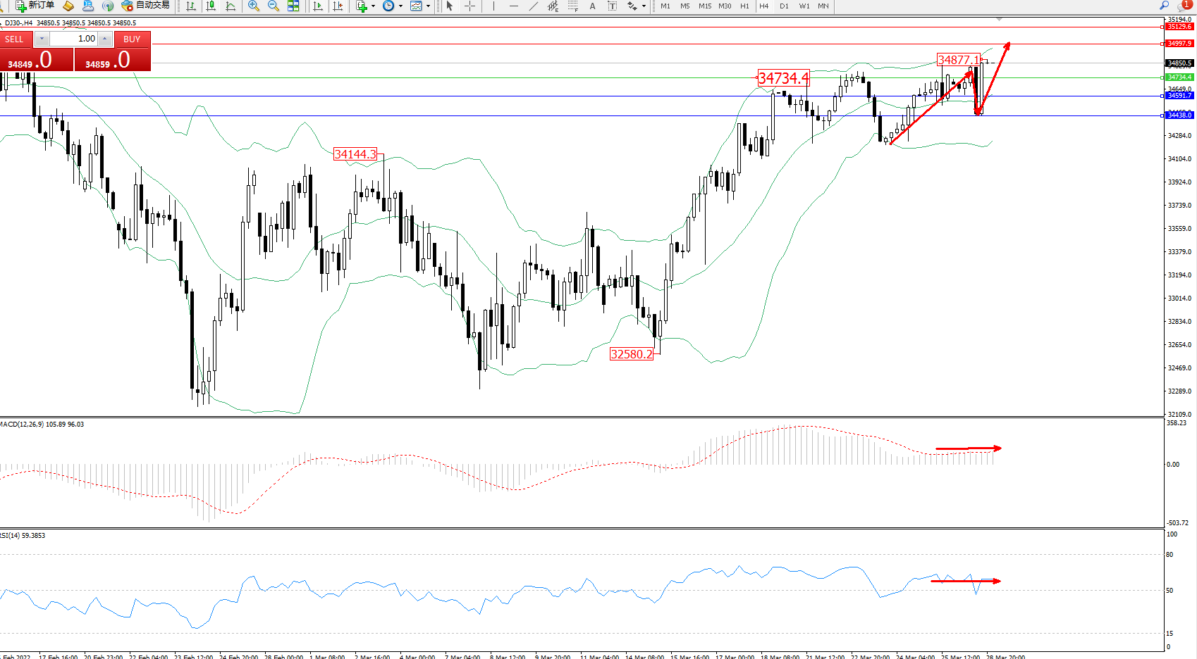 技术点评:多头动力延续布林带指标通道中上轨区间持续震荡上扬,高位维持在通道内宽幅震荡中,短期多头拉升走势或将延续,布林带指标呈弱势整理平移,且有缓慢张口迹象,MACD指标处于0轴线上方弱势徘徊,RSI指标处于50均衡线上側弱势整理;