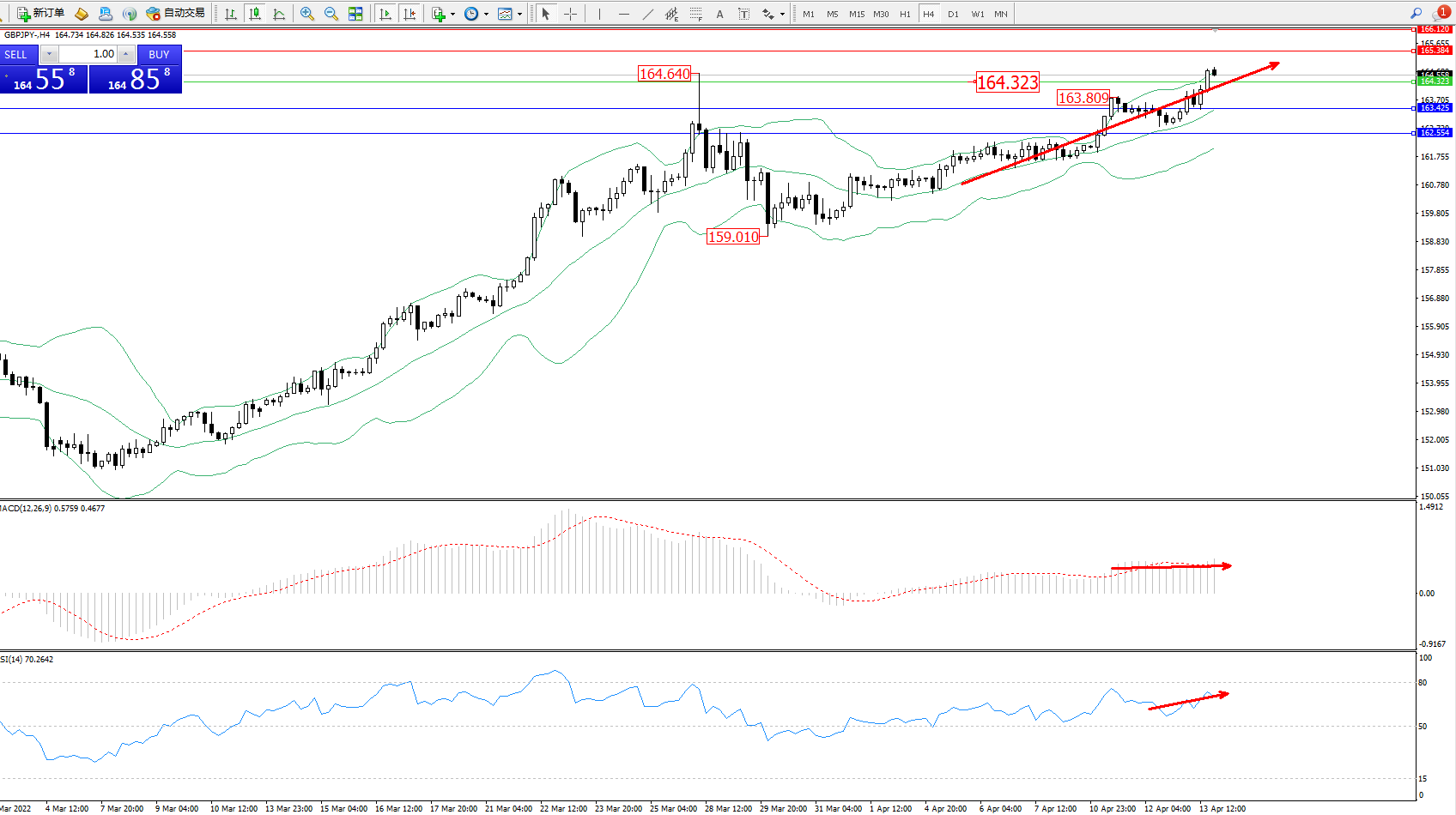 英镑兑日圆维持164.558附近震荡,英国国家统计局:英国3月CPI年率录得7%,续创1992年3月以来新高。英国3月CPI月率录得1.1%,创2021年10月以来新高。广泛的价格上涨推动3月的通胀年率飙升,其中汽油的价格涨幅最大。3月份,餐饮和酒店住宿的价格同样出现大幅上涨,去年同期录得下跌。多种类型的食品价格都录得上升。英国工厂货物出厂价格继续上升,因金属、运输价格处于纪录高位,食品价格为10年来最高。原材料成本也录得上涨,涨幅最明显的是原油。