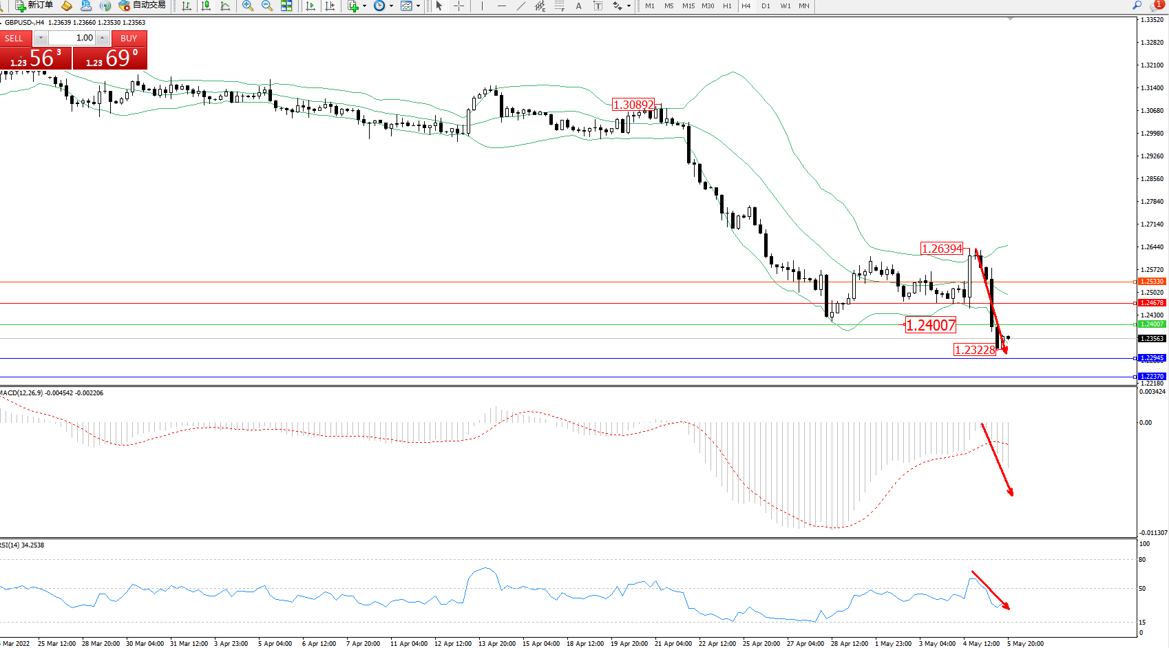 交易策略:1.24007下方看跌,目标1.22945、1.22370