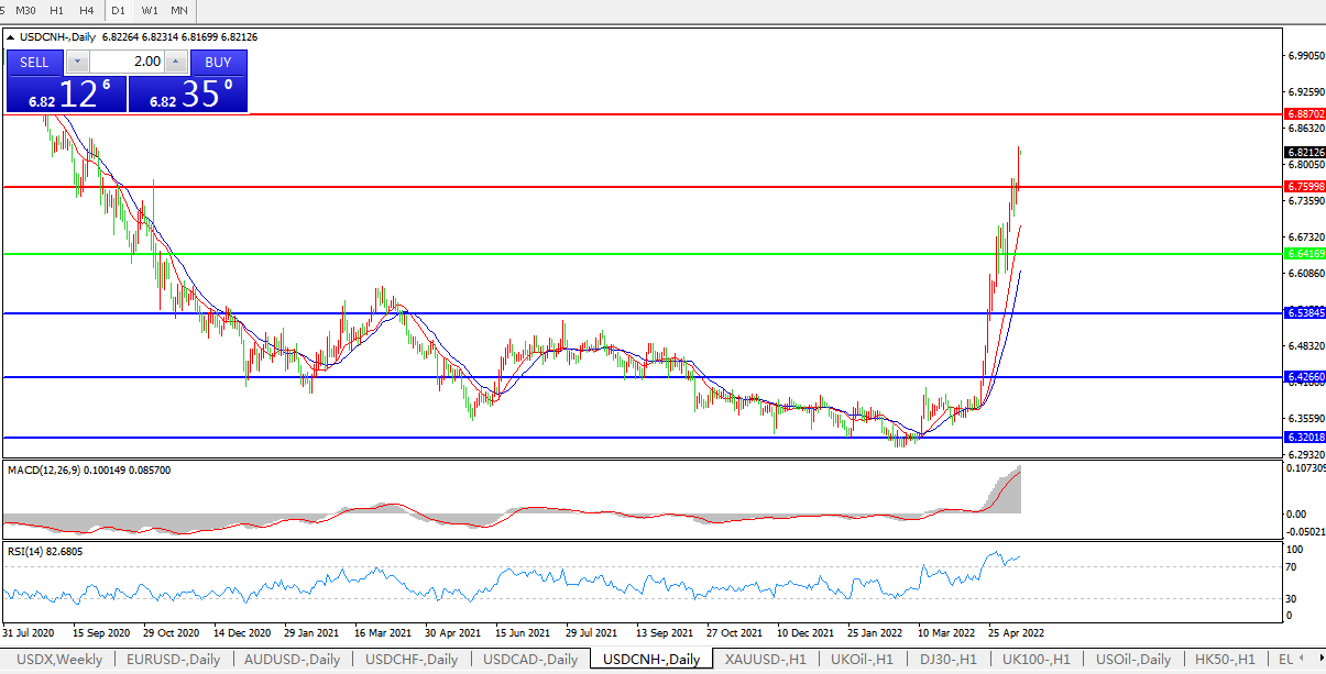 交易策略:在6.6416之上,看涨,目标价位为6.7600,然后为6.8870。