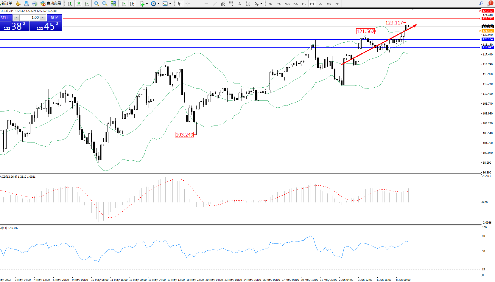 技术点评:多头动力延续布林带指标通道中上轨区间持续震荡上扬,高位延续上轨持续震荡上移至123.117附近节点后整理,布林带指标高位呈缓慢张口走势中;MACD指标处于多头区域维持整理,RSI指标处于多头区域维持缓慢上移中;