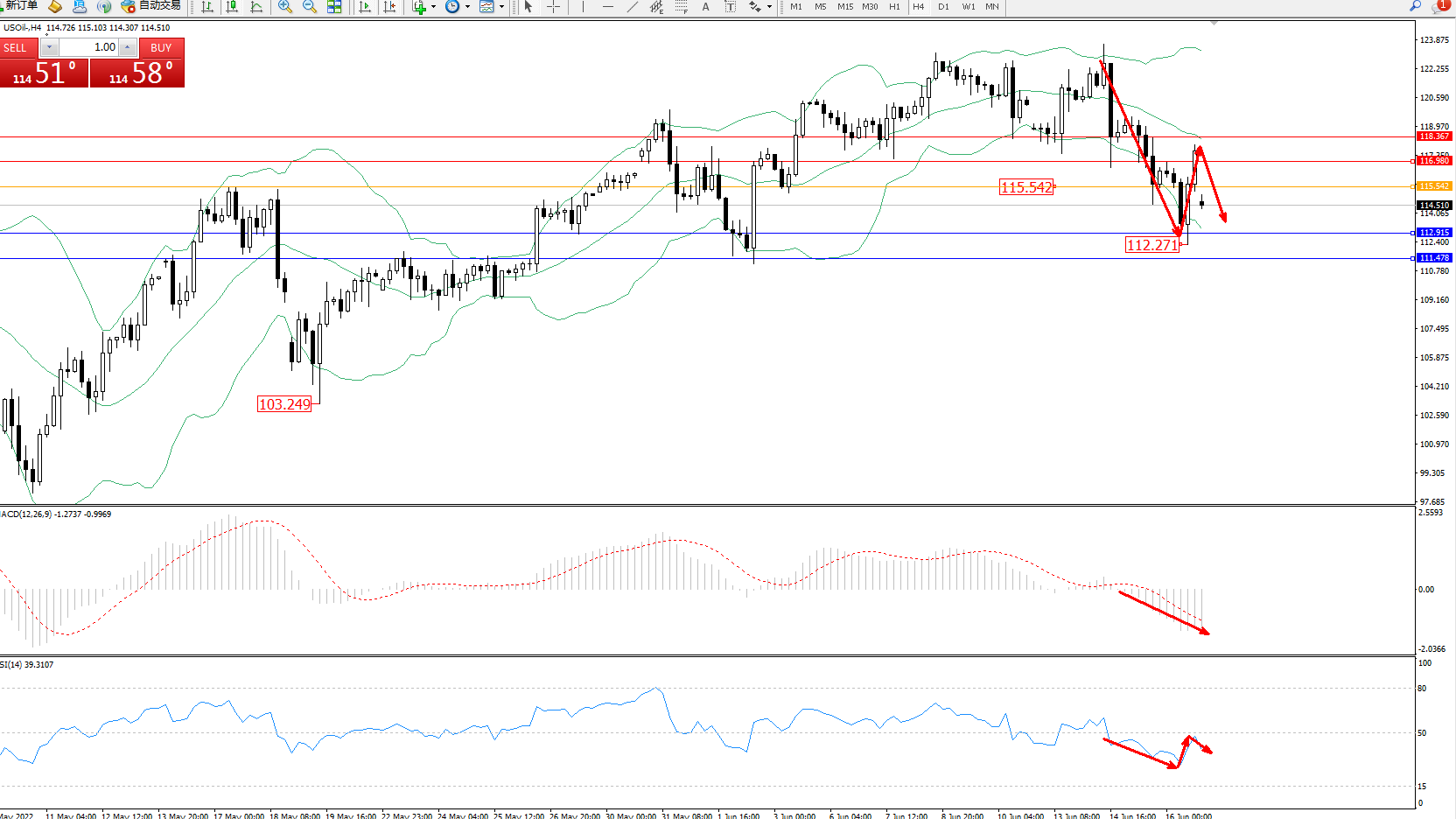 交易策略:在115.542下方看跌,目标112.915、111.478