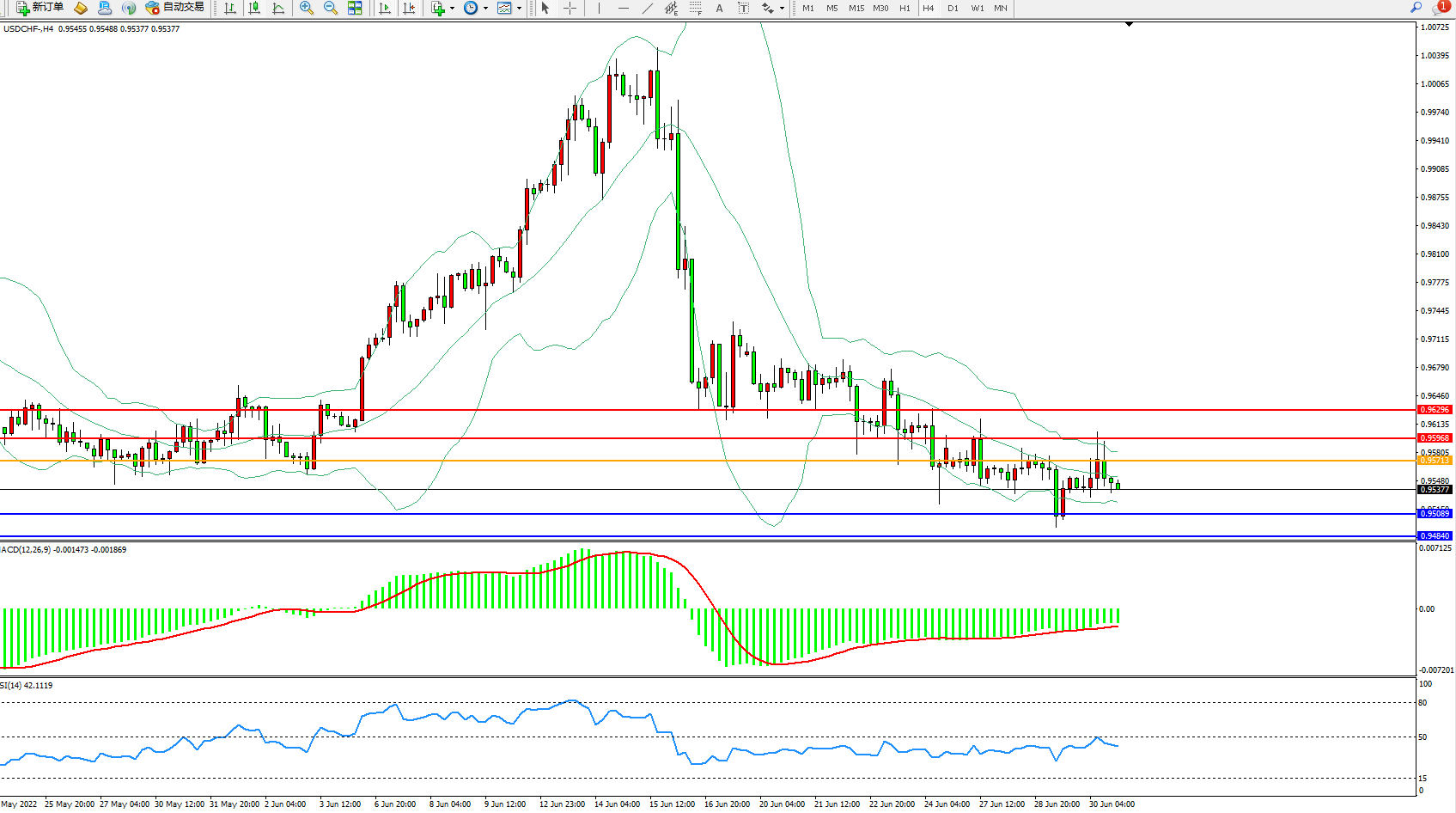 交易策略:0.95713下方看跌,目标0.95089、0.94840
