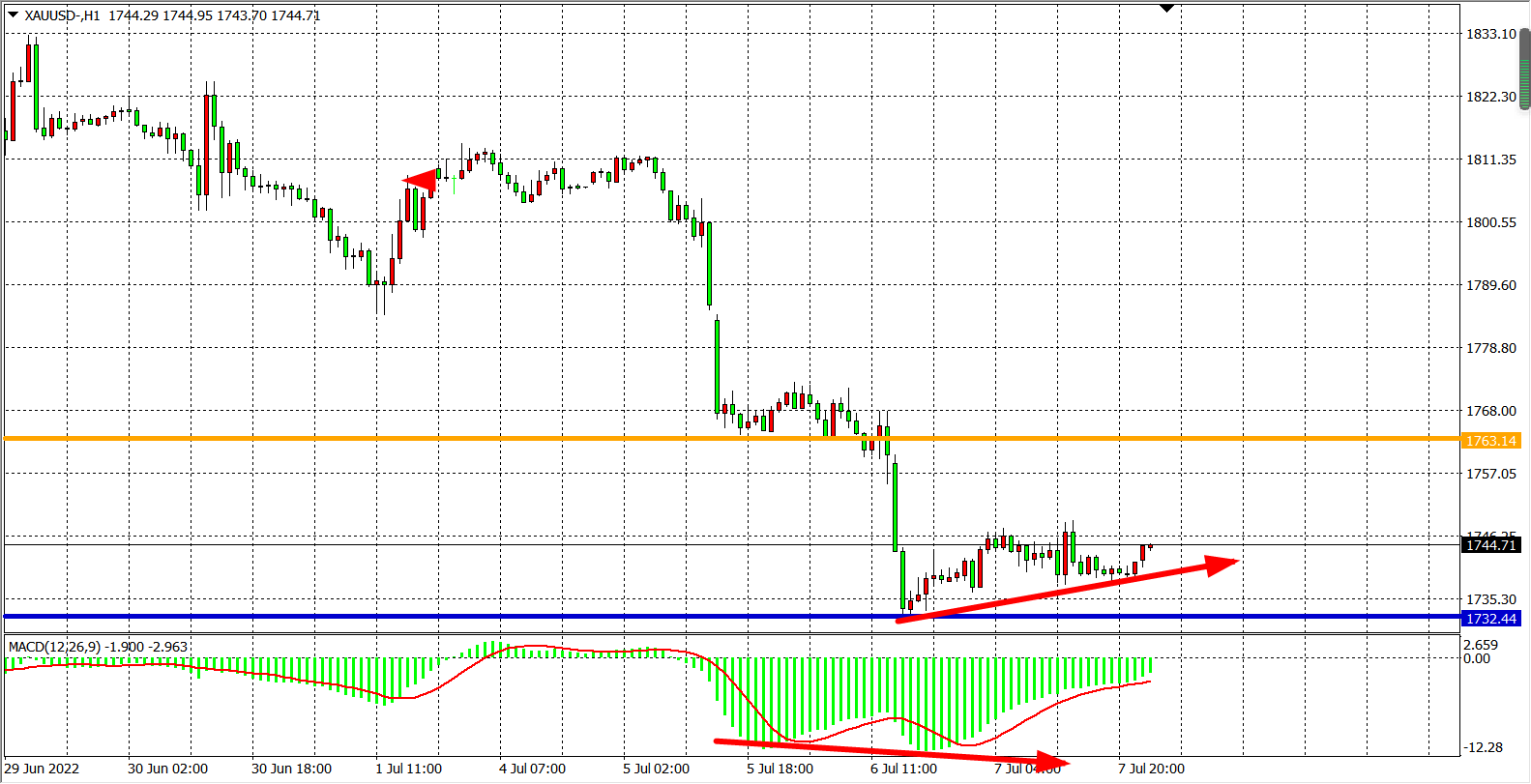交易策略:在1732.00之下看跌,目标1750.00          1763.00