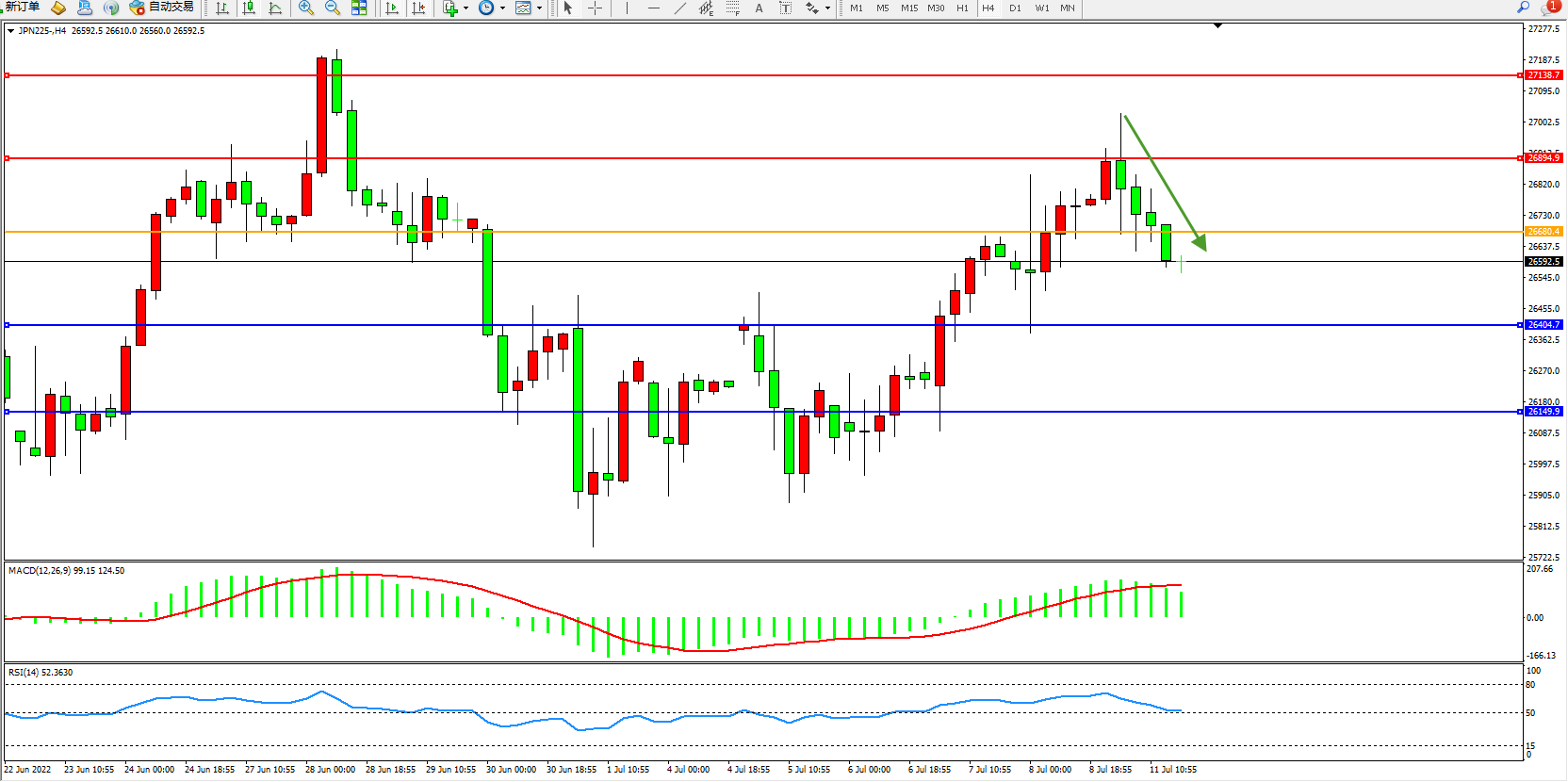 日经225指数7月11日(周一)收盘上涨286.31点,涨幅1.08%,报26803.50点。日本首相岸田文雄:短期财政刺激政策和中长期的财政改革并不矛盾。政府将首先动用外汇储备,然后考虑需要采取哪些进一步措施,将尽快推进提案工作。