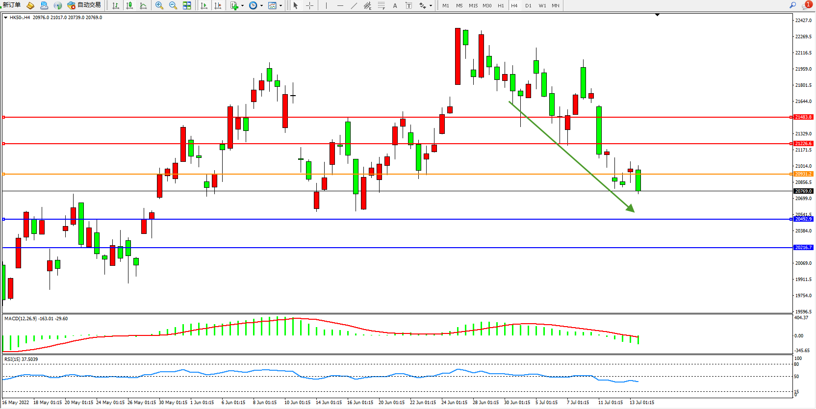 恒指HK50 4小时图