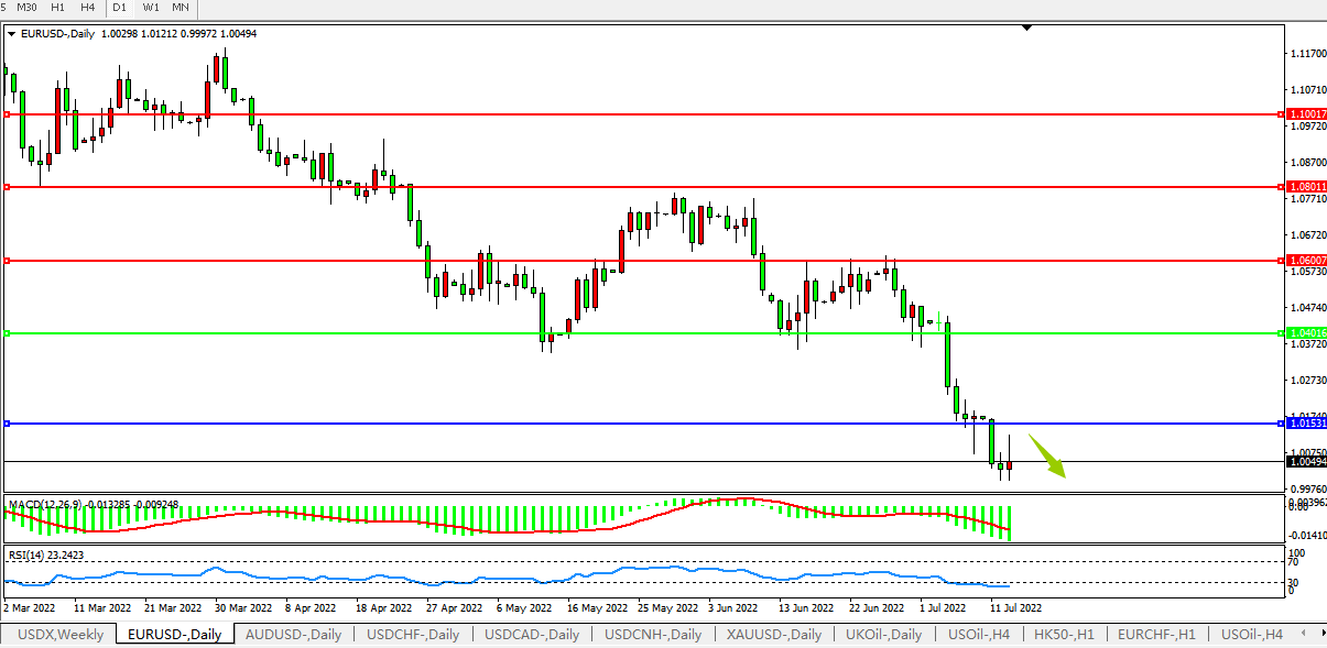 交易策略:1.0400下方看跌,目标1.0150、1.0000