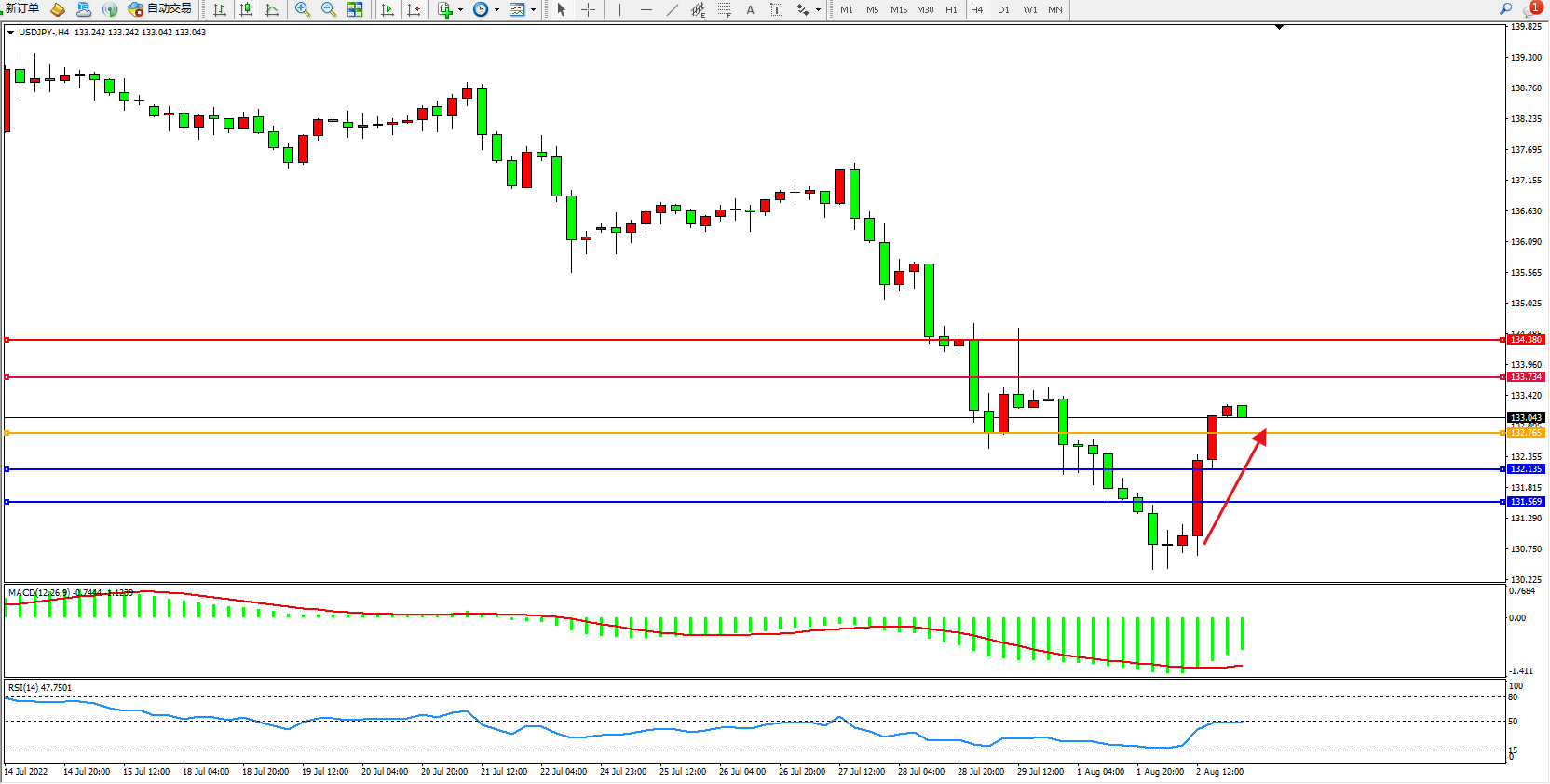 美元兑日圆维持133.045附近震荡,能源价格略降也有助于日元,因为日本是一个能源净进口国。此外,由于对佩洛西访问行程的担忧,日元还受益于一些避险资金的流动。