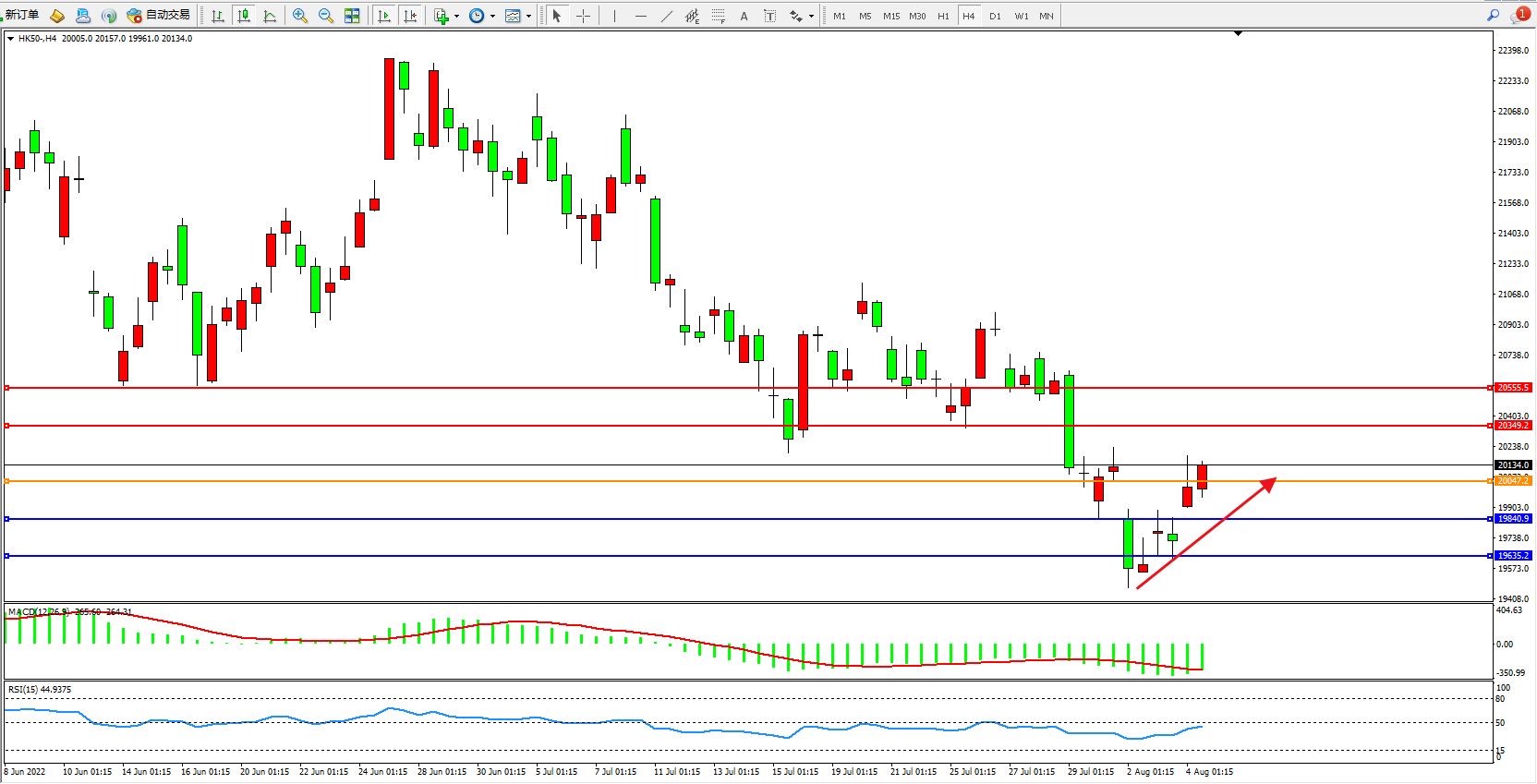 香港恒生指数8月4日(周四)收盘上涨406.95点,涨幅2.06%,报20174.04点;港股全天表现强势,恒指涨2.06%收复20000点,国指涨2.12%,恒生科技指数涨3.18%,三者均连续2日反弹。大型科技股走强带动大市走俏,京东、阿里巴巴涨超5%,小米、百度涨超4%,美团、腾讯、快手均走强;医疗医药板块涨幅居前,沪港深创新药、恒生医药大涨3.38%、3.22%。半导体表现亮眼,芯片ETF基金上涨2.63%。军工板块调整,军工ETF下跌2.12%。