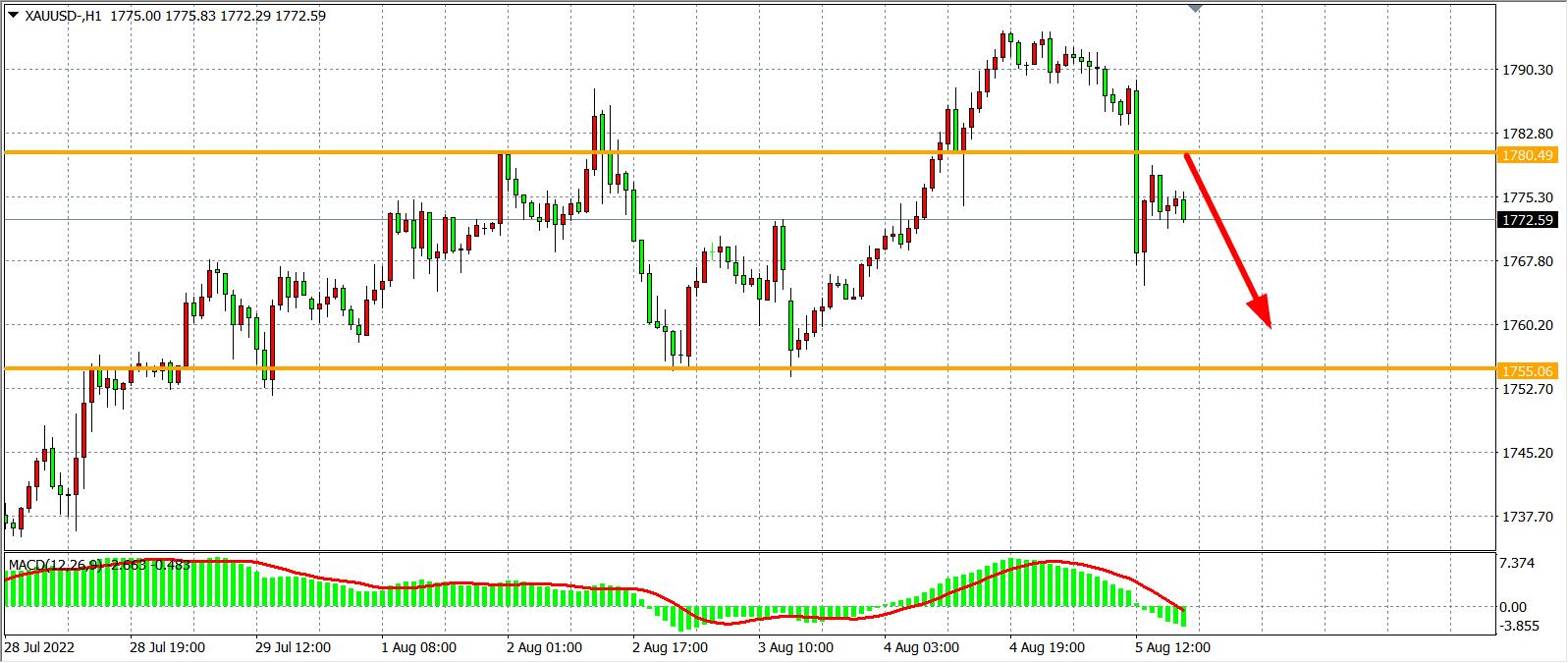 周五(8月5日)美国公布的7月季调后非农就业人口增加52.8万人,创今年2月以来最大增幅,为市场预期的近两倍,强势的非农报告使市场对美联储加息的预期急剧升温。数据公布后,美指拉升超80点,现货黄金跌近20美元,一度跌落1770美元关口,市场开始重新押注美联储9月加息75个基点,黄金短期内或再面临承压。