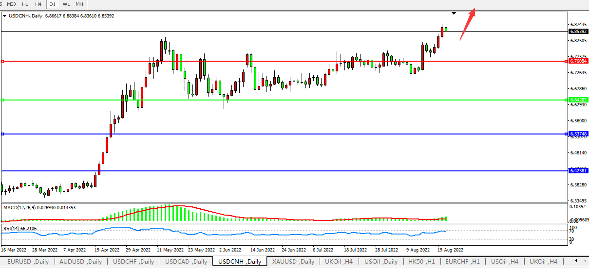 交易策略:在6.6420之上,看涨,目标价位为6.7600、6.8870、7.0000