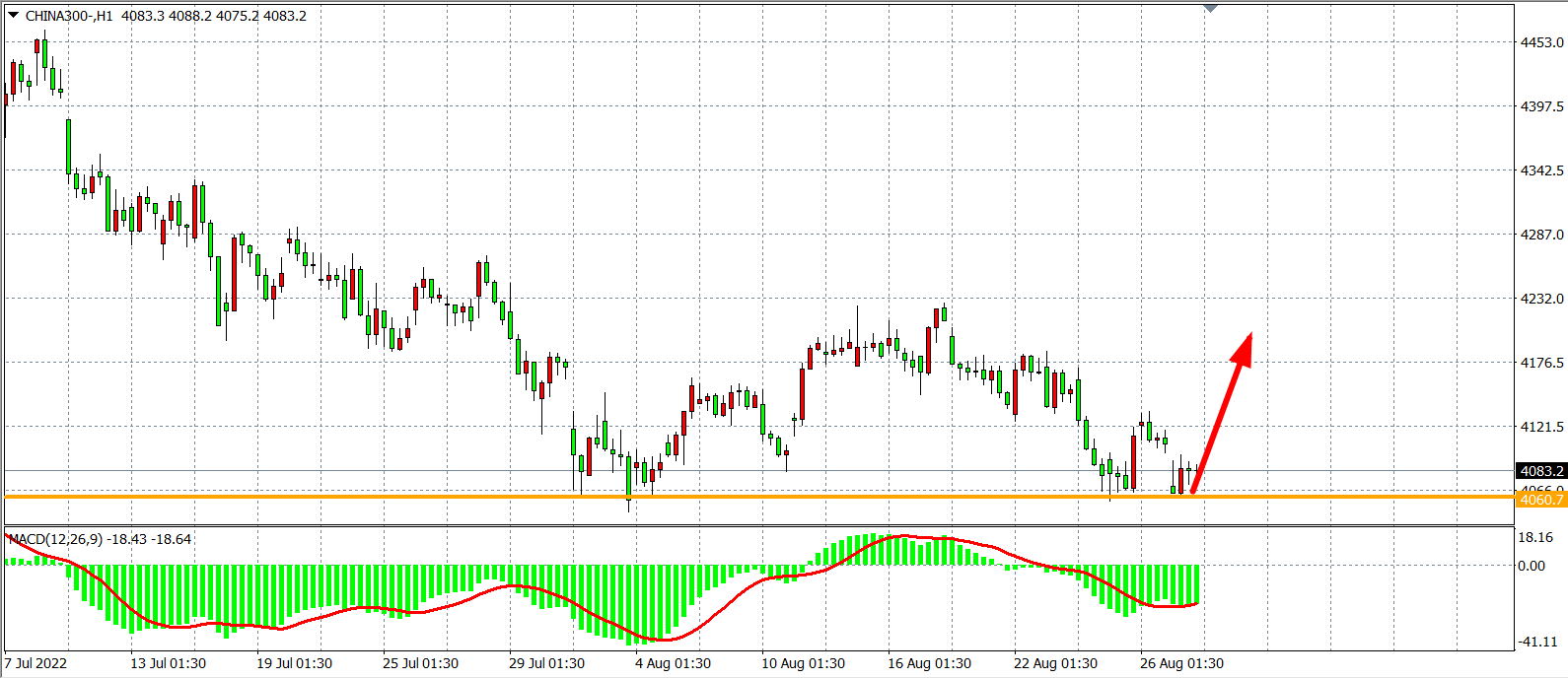 1小时图看,沪深300持续受压4130之下,同时在4060之上获得短期支撑,但MACD于零轴之下量能依旧持续放大,预示行情有进一步走低的动能,日内在4130之下继续看跌,同时关注支撑4060,在4060之上看反弹4130-4200,在4060之下看4000-3950