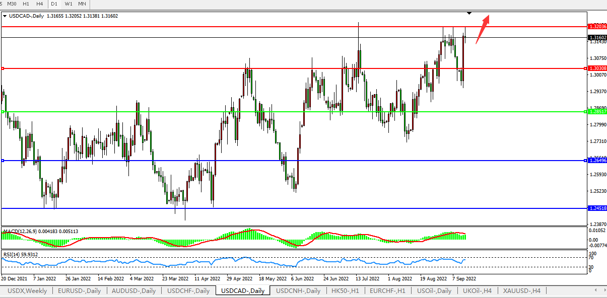 日线图看:短期汇价拉升后小幅回落整理,MACD运行于0轴上且量能微放量,RSI趋于上行,预计短期汇价大概率将在回落整理后进一步上行。
