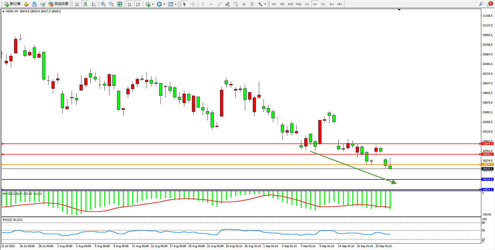 恒指HK50 4小时图