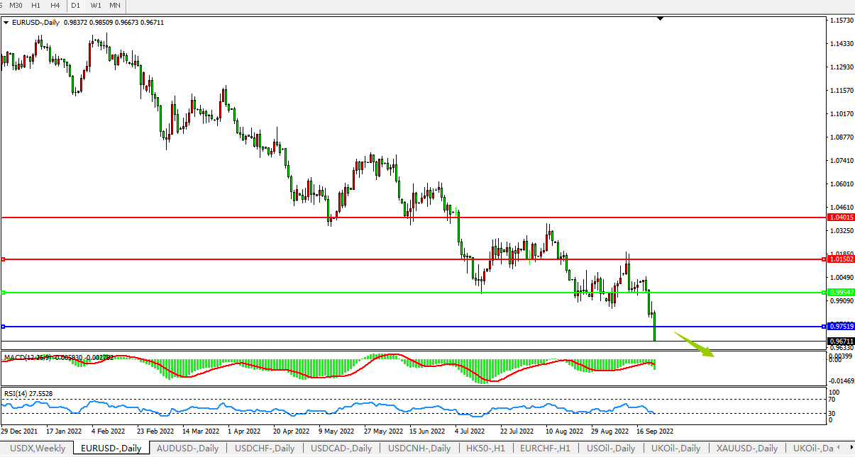 欧元兑美元大跌2.61%至0.9751,本周创2002年10月28日以来新低至0.9736。欧洲央行效仿美联储,在本月加息75个基点后,虽然他们同意需要采取进一步行动来控制创纪录的通胀,但随着能源成本飙升使欧洲走向衰退,对于前置加息是否合适存在一些分歧。