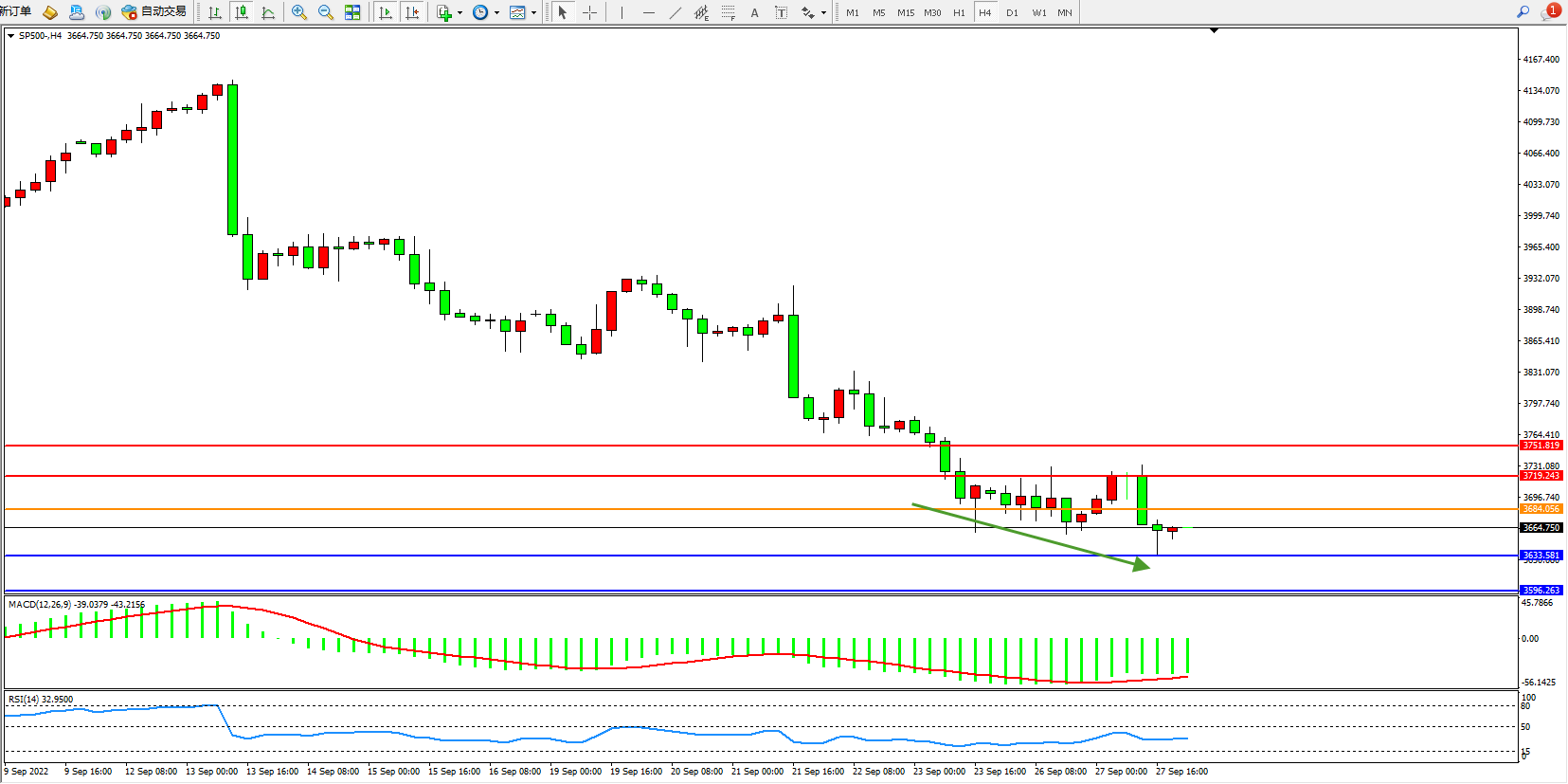 标普500指数9月27日(周二)收盘下跌6.04点,跌幅0.17%,报3649.00点;多名美联储官员周一(9月26日)淡化全球市场不断上升的波动性,并重申首要任务仍然是控制通胀。今年经济增长会放缓很多,明年增长甚至会更慢,但没有提供具体的估计。