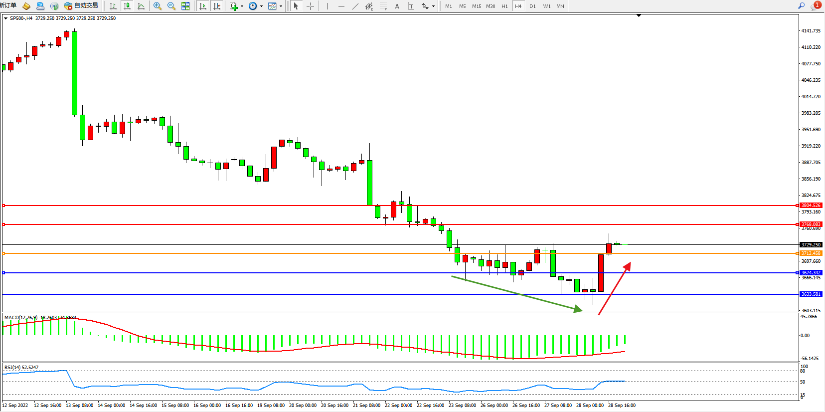 标普SP500——4小时K线图显示: