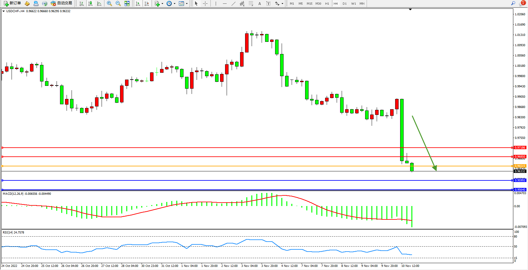 交易策略:0.96515下方看跌,目标0.95993、0.95640
