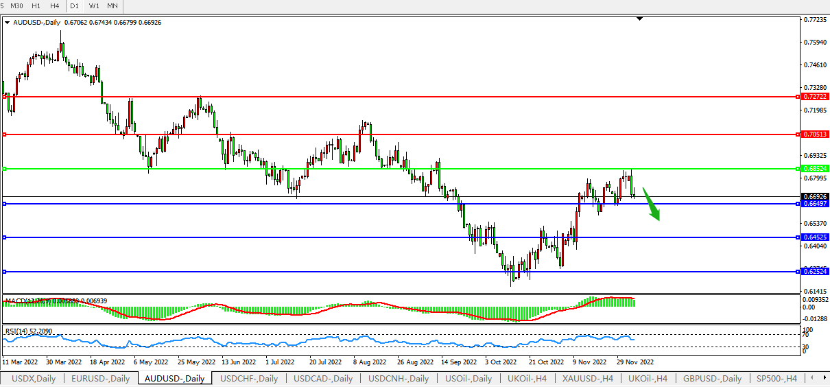 交易策略:0.6850下方看跌,目标0.6650、0.6450