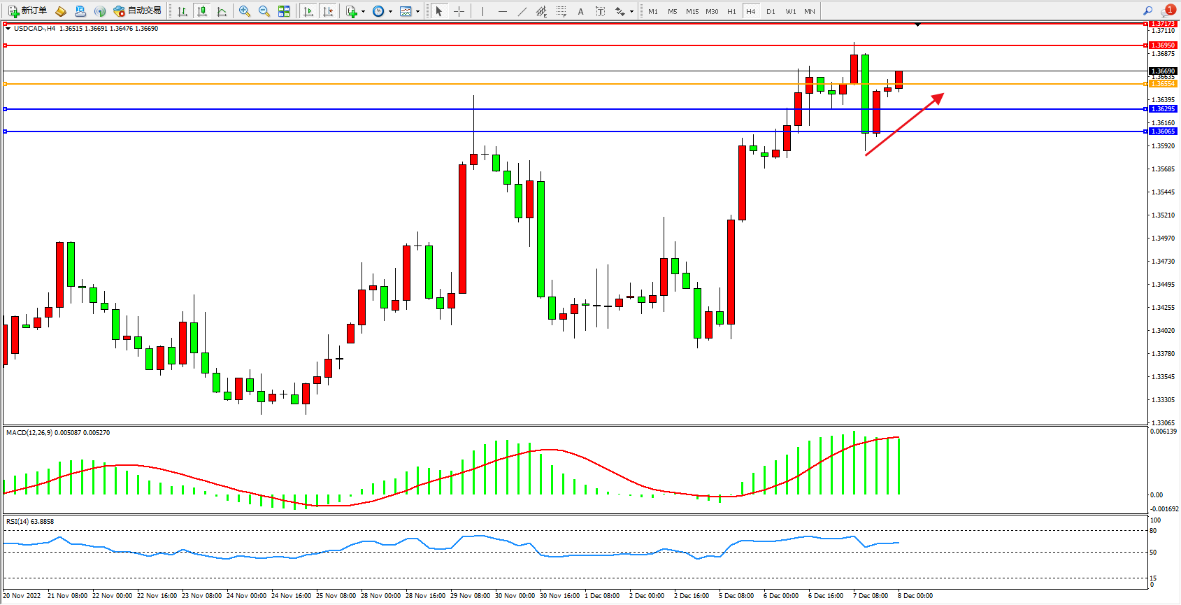 交易策略:1.36554上方看涨,目标1.36950、1.37173