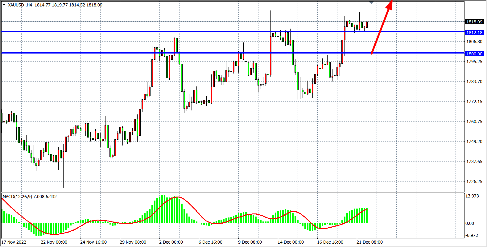 交易策略:在1800.00之上看涨,目标1825.00         1835.00