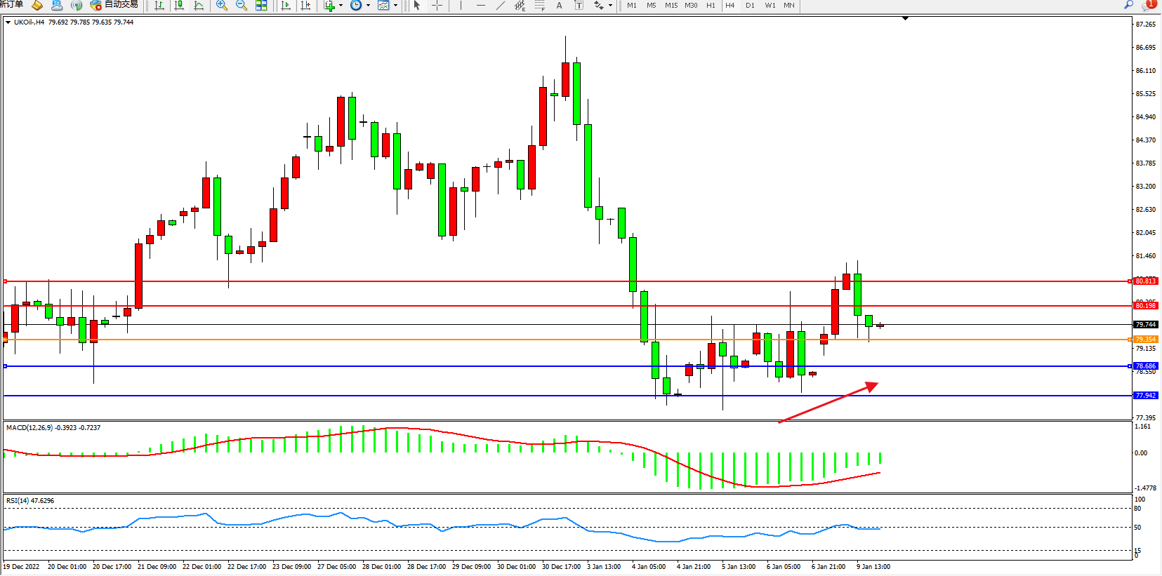 布油维持79.744附近震荡,原油期货在新年伊始暴跌,原因是交易员重新评估寒冷天气对能源需求的影响,加上对更广泛全球市场衰退的担忧依然存在,这种不确定性可能会导致油价在短期内大起大落。