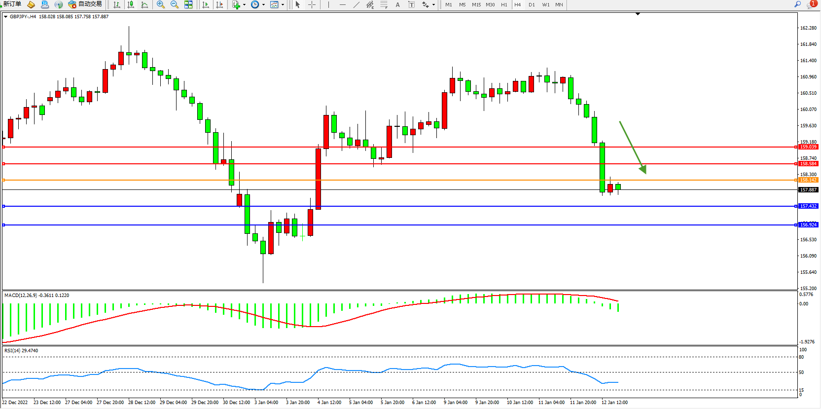 4小时图看:高位空头动力维持震荡下行,市场看空情绪笼罩,短期跌势或将持续,MACD指标处于0轴线下侧缓慢下移,RSI指标处于空头区域低位弱势下行;
