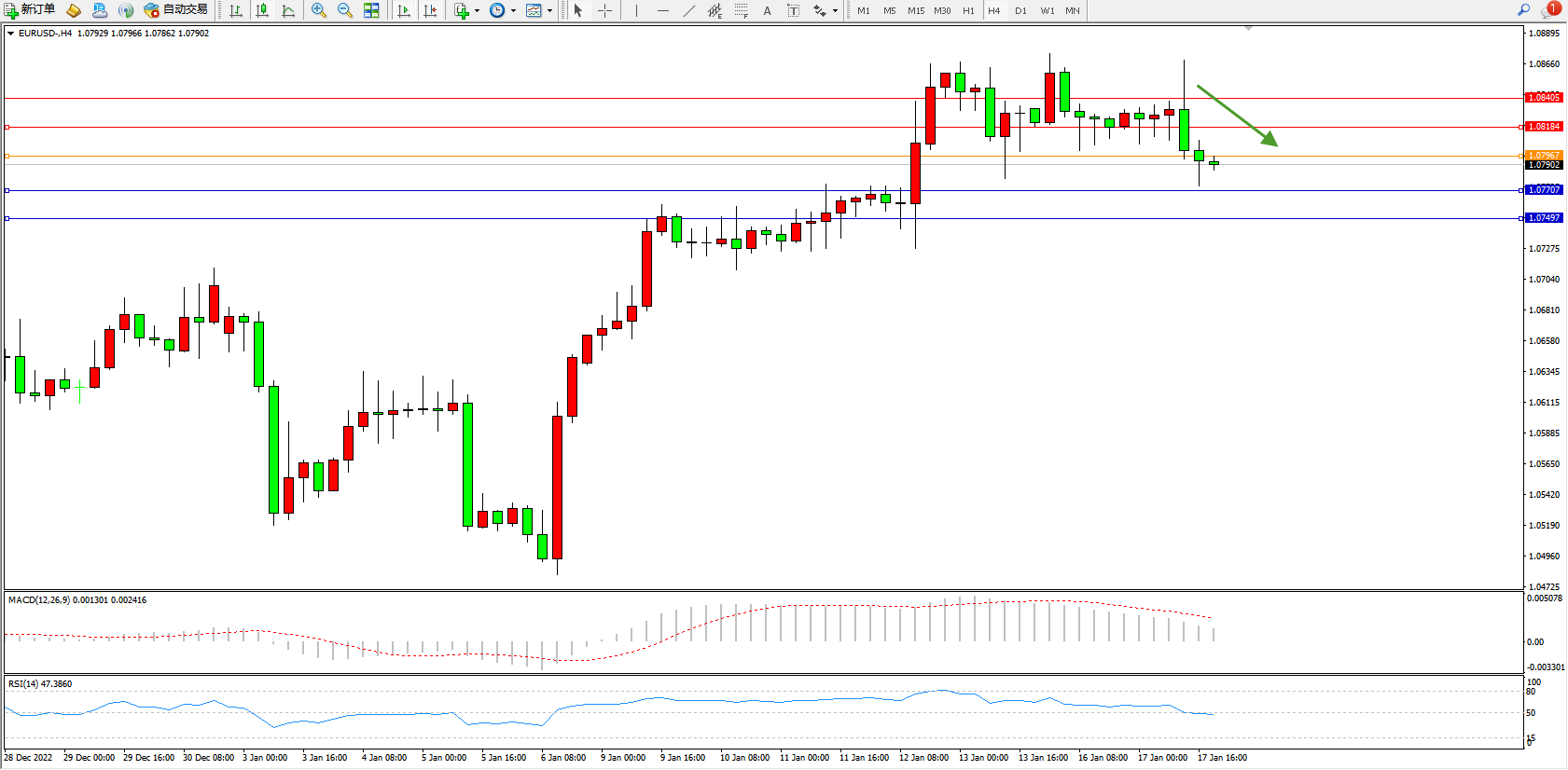 交易策略:1.07967下方看跌,目标1.07707、1.07497