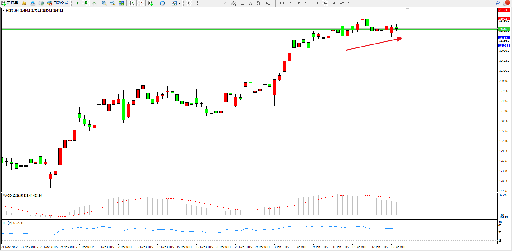 香港恒生指数1月19日(周四)收盘下跌27.02点,跌幅0.12%,报21650.98点;受隔夜美股大跌影响,港股表现低迷,恒生科技指数一度跌至2.5%,最终下跌1.65%,恒指、国指分别跌0.12%和0.38%,盘中二者曾一度转涨。大型科技股普遍走低,快手跌6%,网易跌3%,小米、百度、美团跌超2%,腾讯逆势涨0.74%;香港特区政府卫生防护中心总监徐乐坚今日表示,因应1月30日起将取消新冠确诊者的强制检疫隔离措施,自当日起,确诊者无须再进行申报。此外,当时仍在生效的隔离令将即时取消,隔离人员可离开隔离设施。
