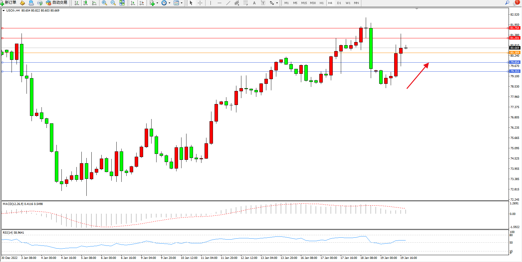 原油维持80.669附近震荡,美国至1月13日当周EIA俄克拉荷马州库欣原油库存 364.6万桶,前值251.1万桶。EIA库欣原油库存跃升至一年来最高水平。