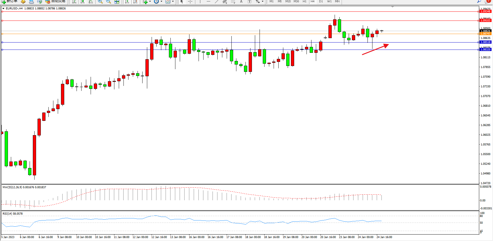 欧元兑美元维持1.08826附近震荡,欧元区私营部门经济在2023年初意外恢复增长,但标普经济学家认为困境犹存。刚刚出炉的PMI表明,欧元区私营部门经济在2023年初意外恢复增长,提振了市场对于欧元区经济“软着陆”的希望。