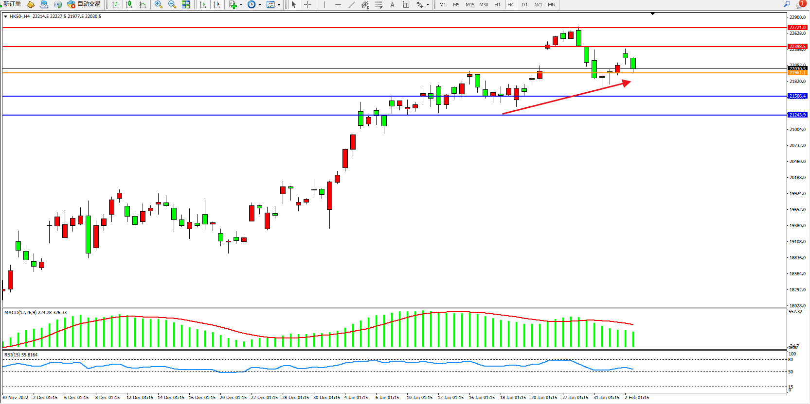恒指HK50 4小时图