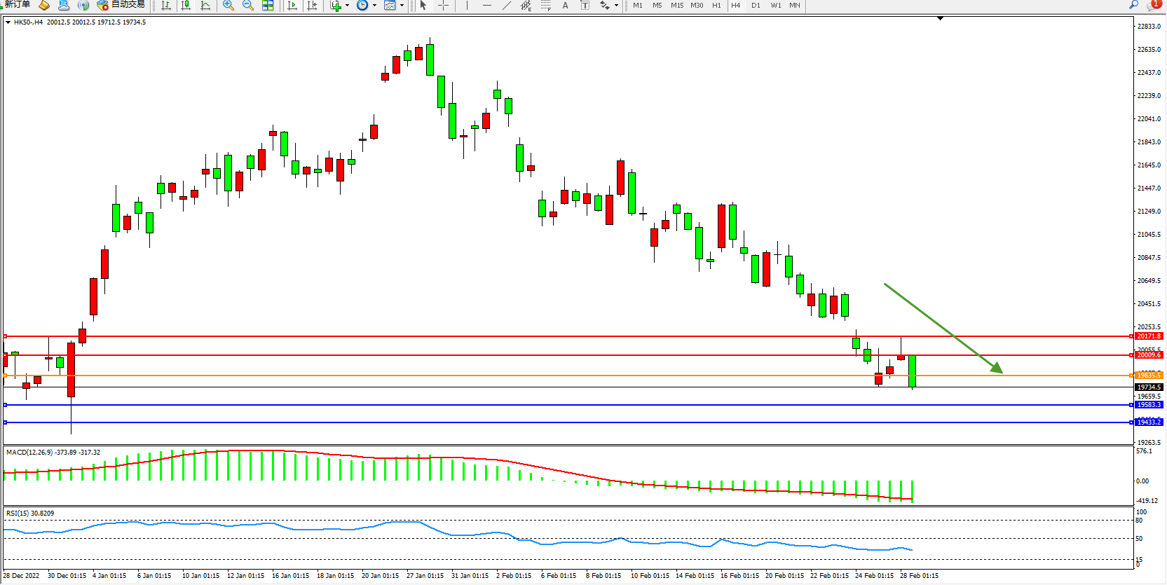 恒指HK50 4小时图