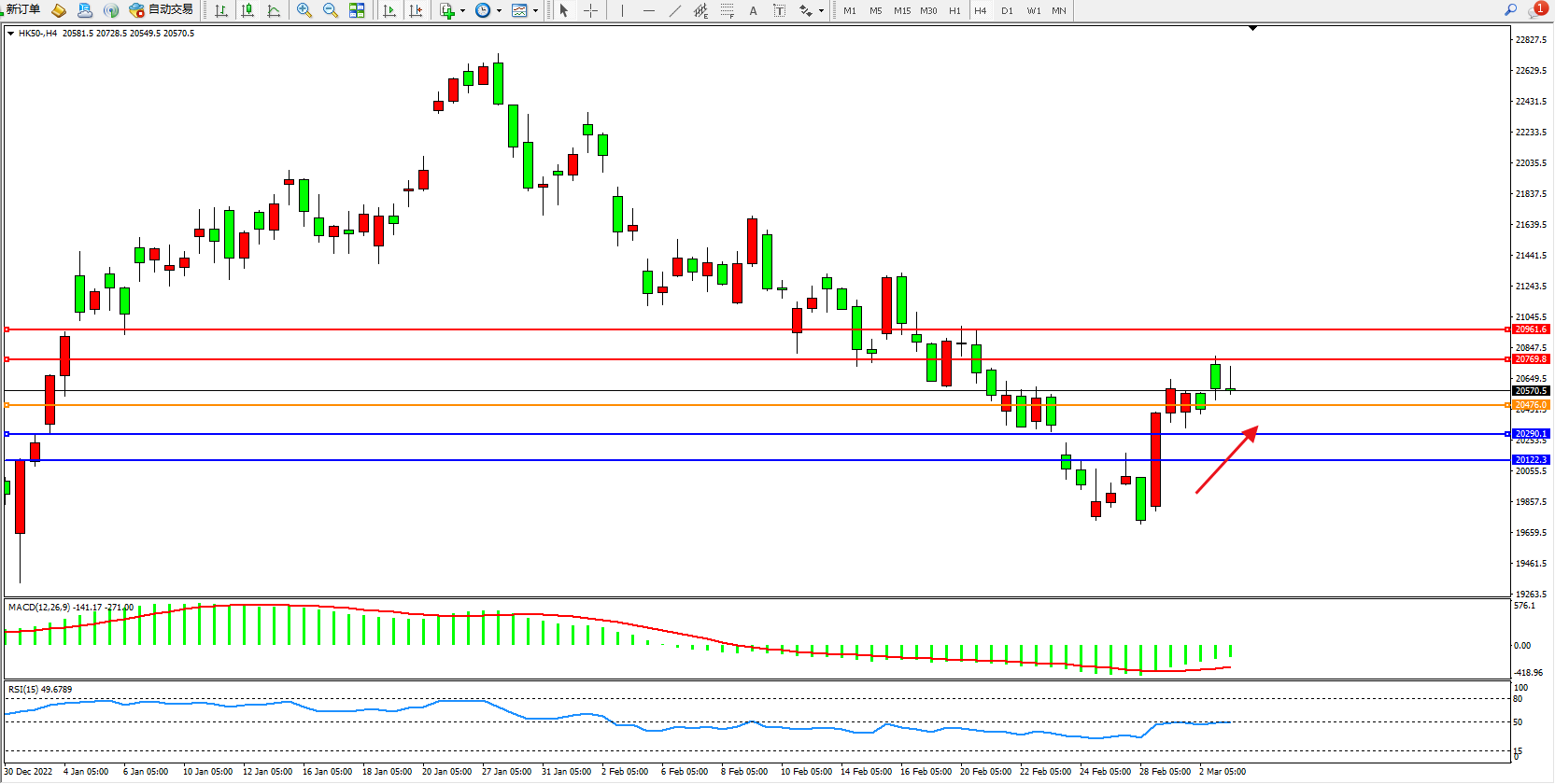 香港恒生指数3月3日(周五)收盘上涨138.08点,涨幅0.68%,报20567.54点;港股午后再度拉升,恒生科技指数一度涨超3%,收涨2.06%,恒指、国指分别涨0.68%和1.2%,本周三大指数先抑后扬,2万点大关失而复得。大型科技股齐涨,哔哩哔哩绩后大幅上涨超10%,百度涨超5%,网易、京东涨超3%,腾讯、美团、阿里巴巴皆走俏;南下资金净流入39.97亿港元,大市成交额为1057亿港元。