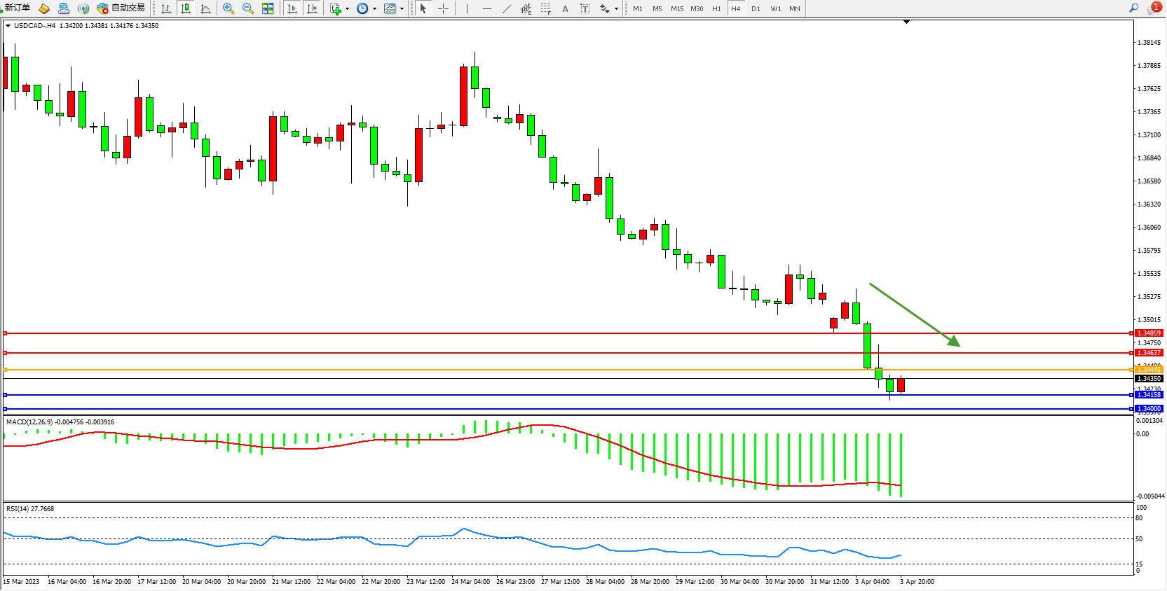 4小时图看:空头动力低位持续下行,短期跌势未见止步,市场空头情绪强势笼罩,MACD指标处于空头区域低位下挫,RSI指标处于空头区域低位弱势徘徊;