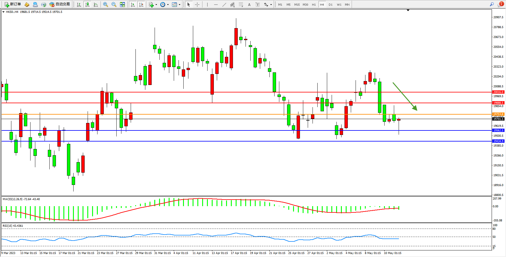 香港恒生指数5月11日(周四)收盘下跌18.41点,跌幅0.09%,报19743.79点;港股尾盘拉升,恒生科技指数涨幅回升至1.34%,盘初一度涨2%,恒指近乎翻红,国指小幅收涨0.18%,午后三者走出探底回升之势。大型科技股涨跌参半,阿里巴巴涨3%,百度涨1%,小米,腾讯、京东小幅走低;南下资金全日净流入34.56亿港元,大市成交额仍不足千亿港元。