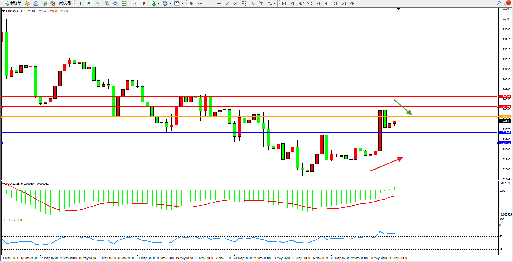 备选策略:1.24212上方看涨,目标1.24405  1.24604