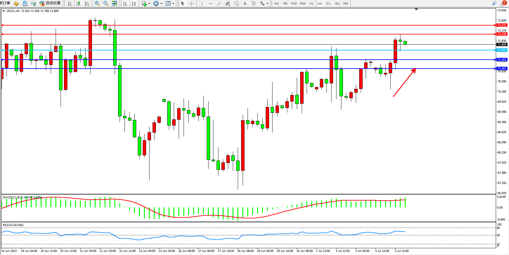 4小时图看:多头动力持续震荡上扬,短期看涨情绪持续,市场多头不断拉升中,MACD指标处于多头区域维持整理,RSI指标处于多头区域维持震荡;