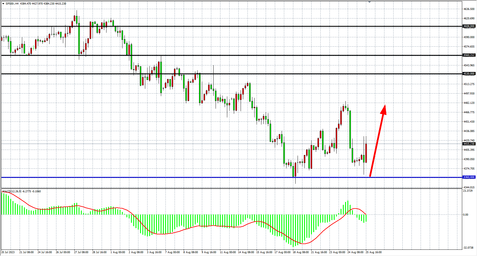 4小时图看,标普在4460获得支撑暂时止跌,MACD量能维持零轴下,支撑关注4360附近,上方阻力4480-4530。