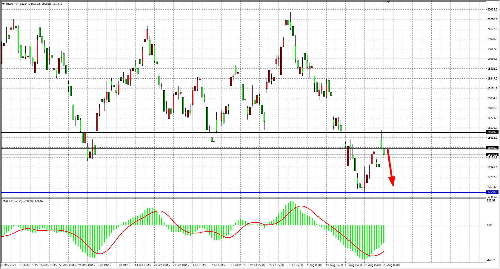 交易策略:18250 下方看跌,目标 17550 17200