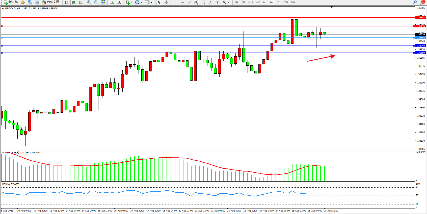 交易策略:1.35902上方看涨,目标1.36135  1.36307