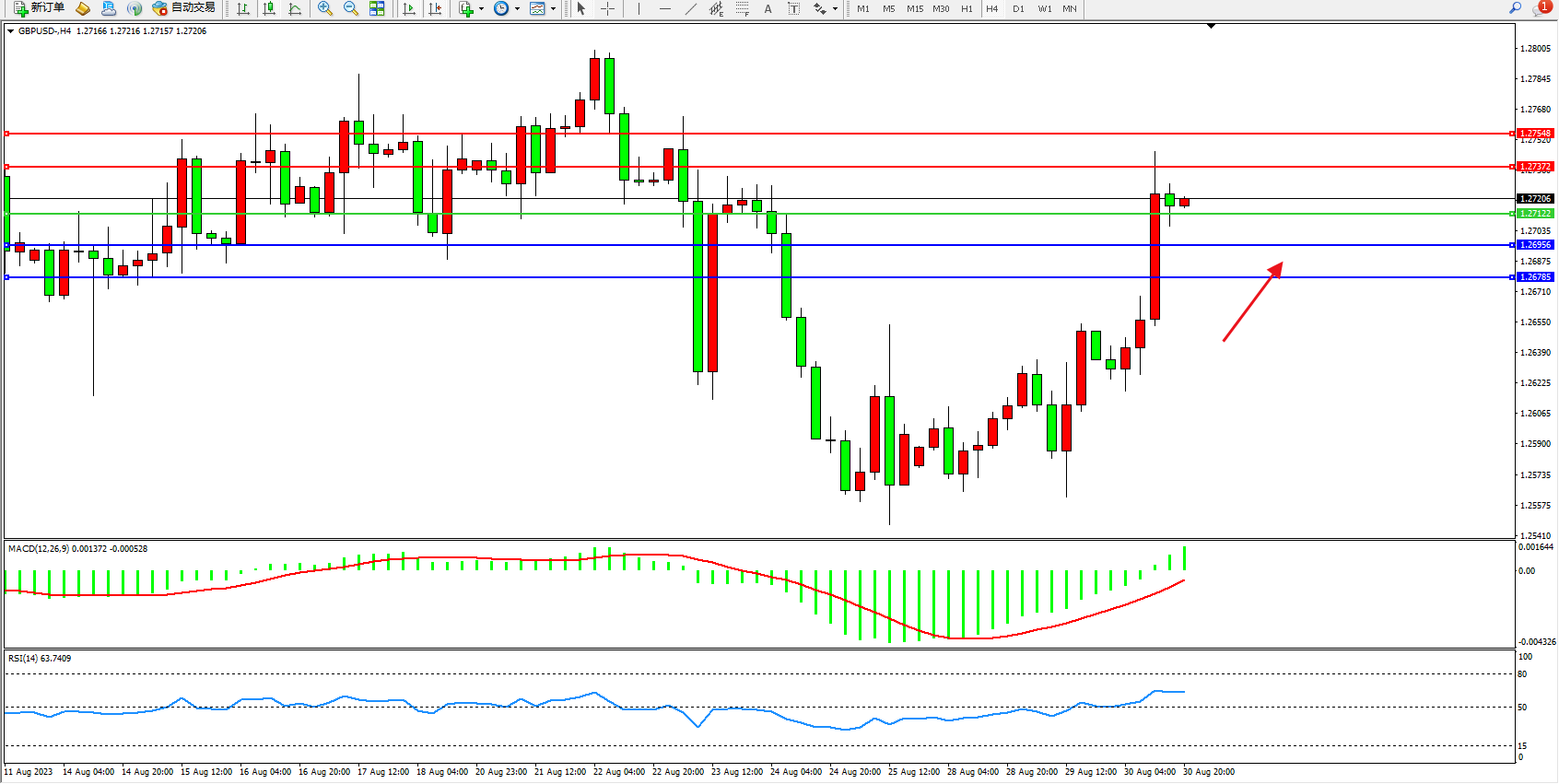 交易策略:1.27122上方看涨,目标1.27372 1.27548