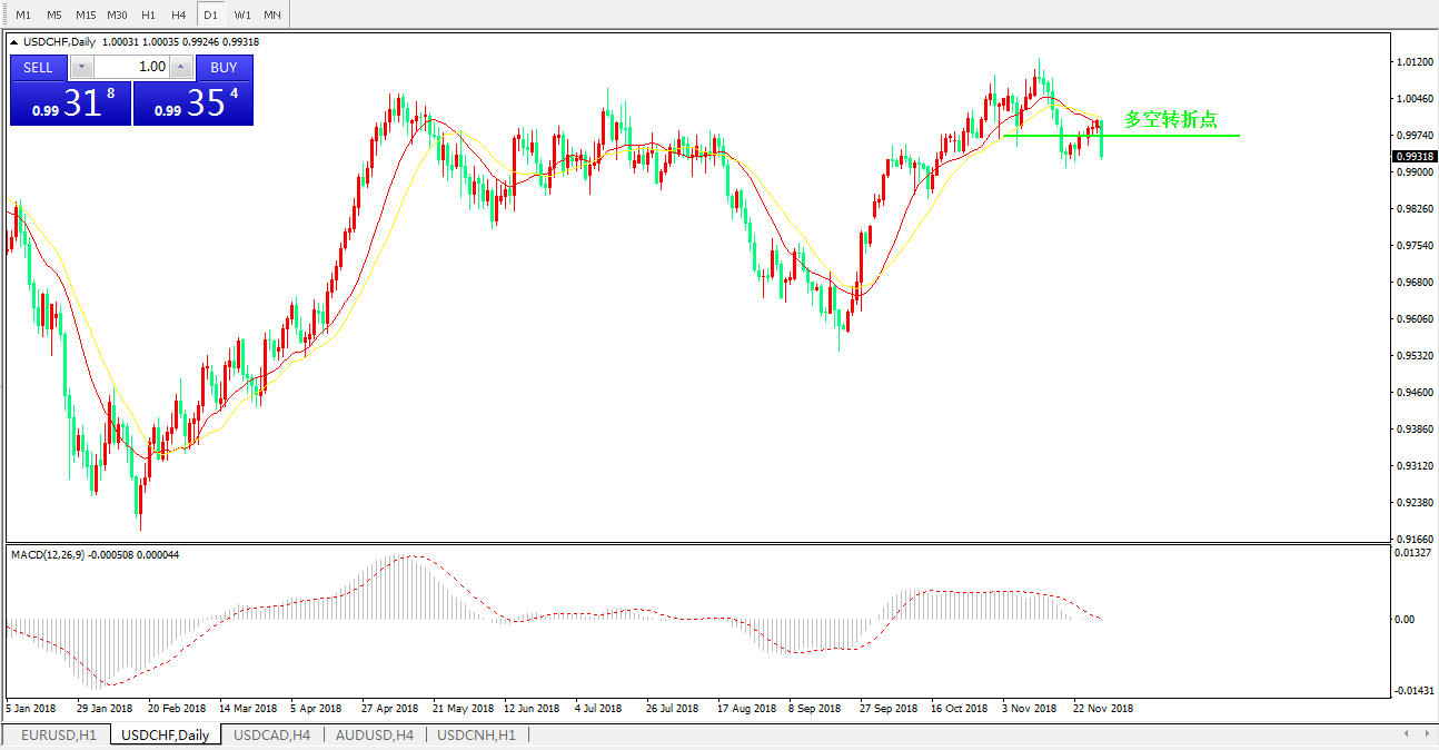 美元兑瑞郎弱势反弹遇阻,大幅下挫
