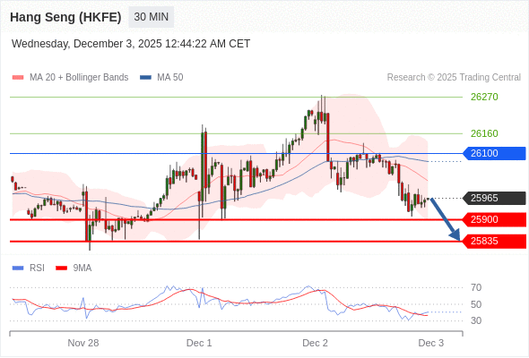 在 26100 之下,看跌,目标价位为 25900 ,然后为 25835 。