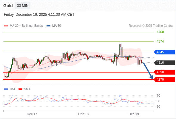 在 4345 之下,看跌,目标价位为 4290 ,然后为 4270 。