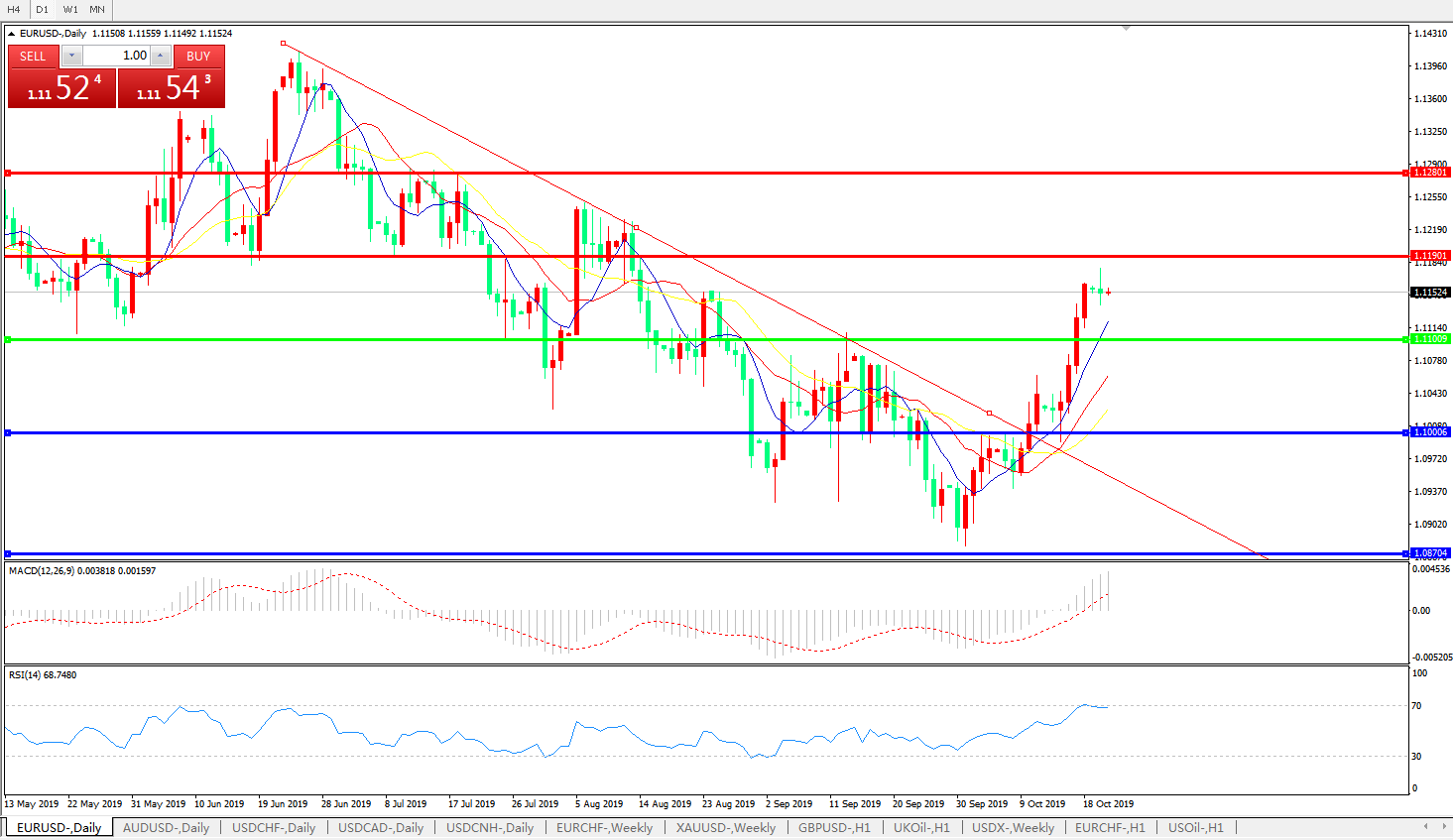 欧元兑美元在周一欧洲时段盘初跳涨升至高点1.1179,收复了早盘的跌势,再度刷新8月中旬以来的两个多月新高,原因在于英镑汇价在日内再度走强,投资者在短暂的失望之后,仍继续看好英国有序脱欧前景; 此前,英国新版脱欧协议周末在该国议会未能闯关成功,此状况令市场一度失望,导致欧系货币在亚洲时段低开,但之后,市场经进一步解读后认为,英国硬脱欧风险眼下已经基本排除,这推动英镑继续走强,而同样状况也会让欧元区免于受到不确定性冲击,从而,欧元汇价也跟随保持强势;近期以来,关于英国脱欧的消息面因素主导市场,也令欧元反过来成为了英镑的“影子货币”。本周稍后,欧洲央行将召开政策会议,但市场已经提前预判现任行长德拉基在离任前的最后一次会议上料不会释放出重磅措施,因此,本周欧元汇价大概率仍将跟随英镑走势联动