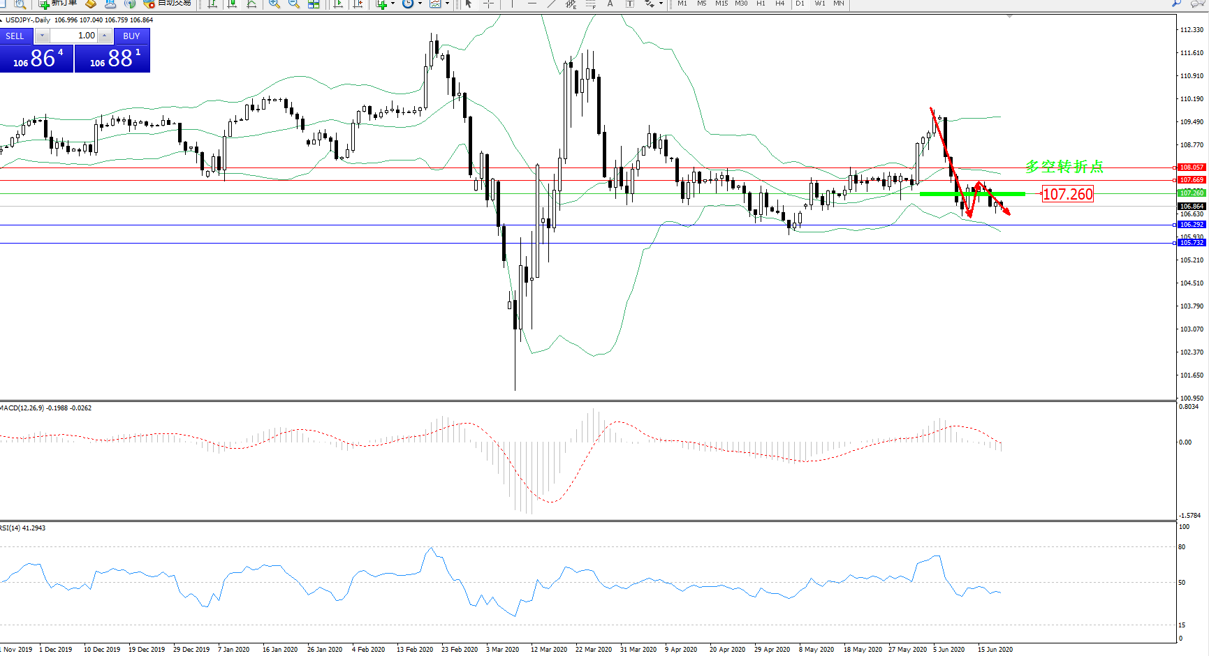 交易策略:107.260下方看跌,目标106.292105.732